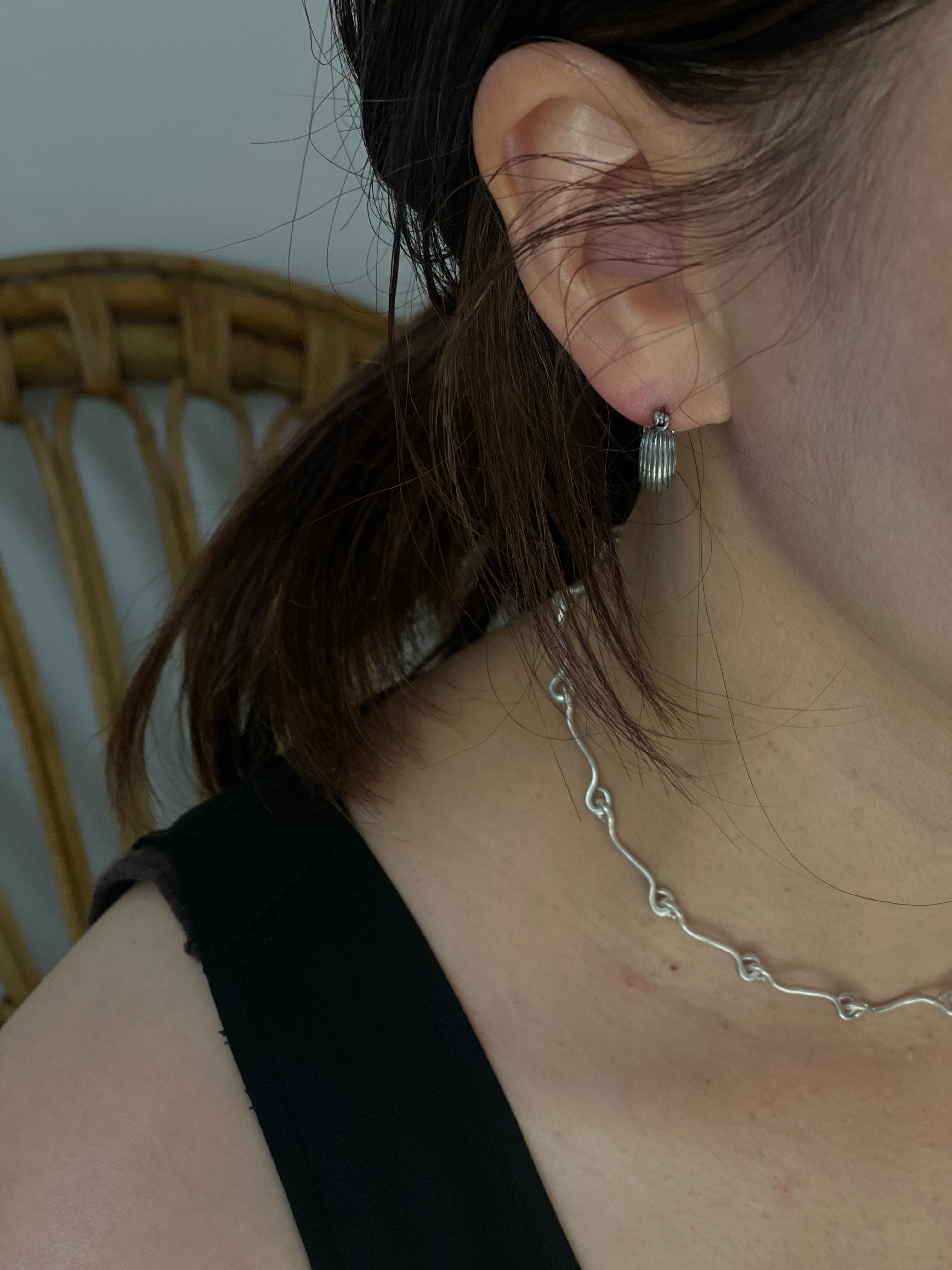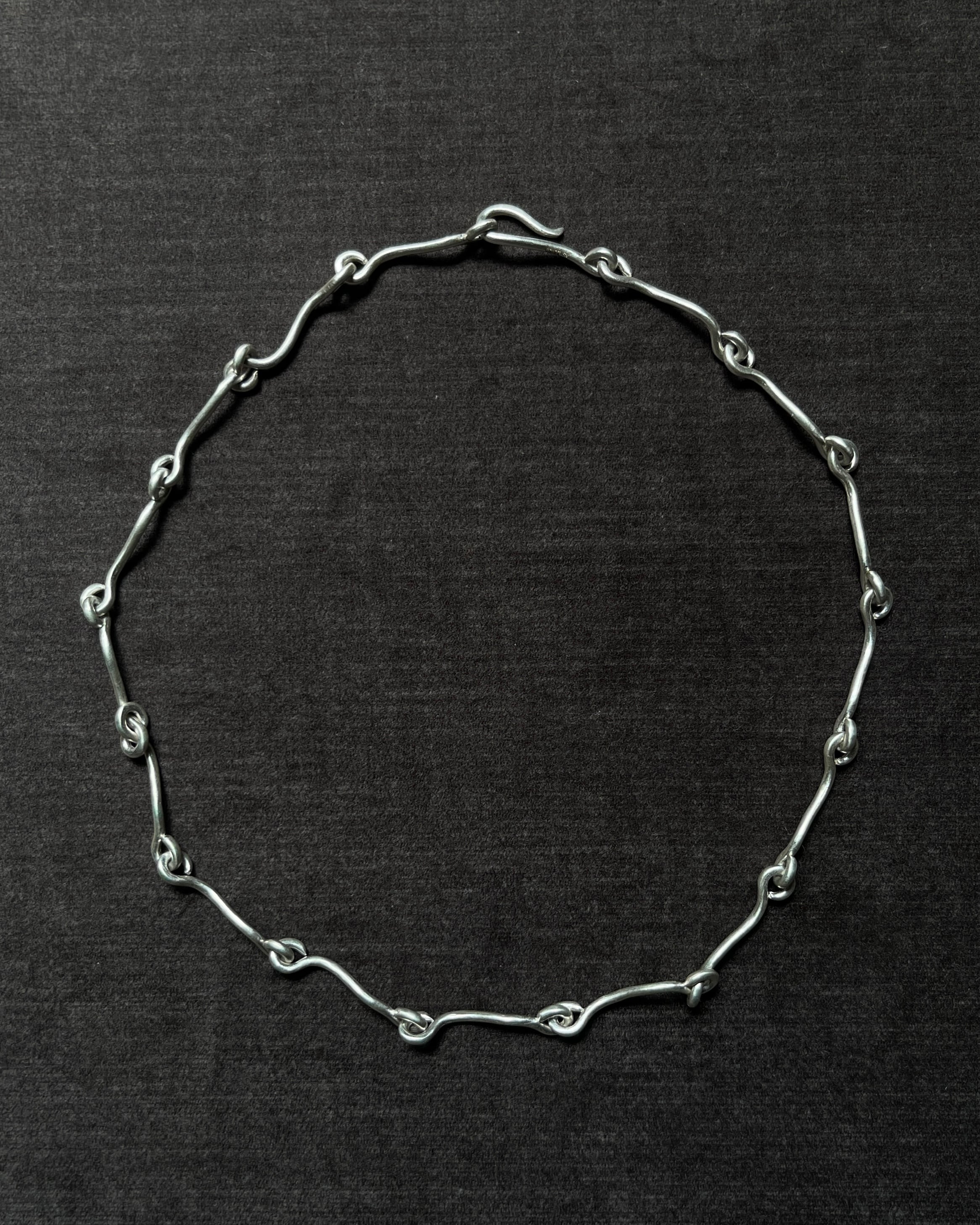 素材: シルバー925 サイズ: 37cm / 39cm 捻りのパーツを繋げてチョーカーの長さにした立体感のあるデザイン。 肌馴染みもよく、さりげない存在感です。 首元が強調されるトップスにオススメです。