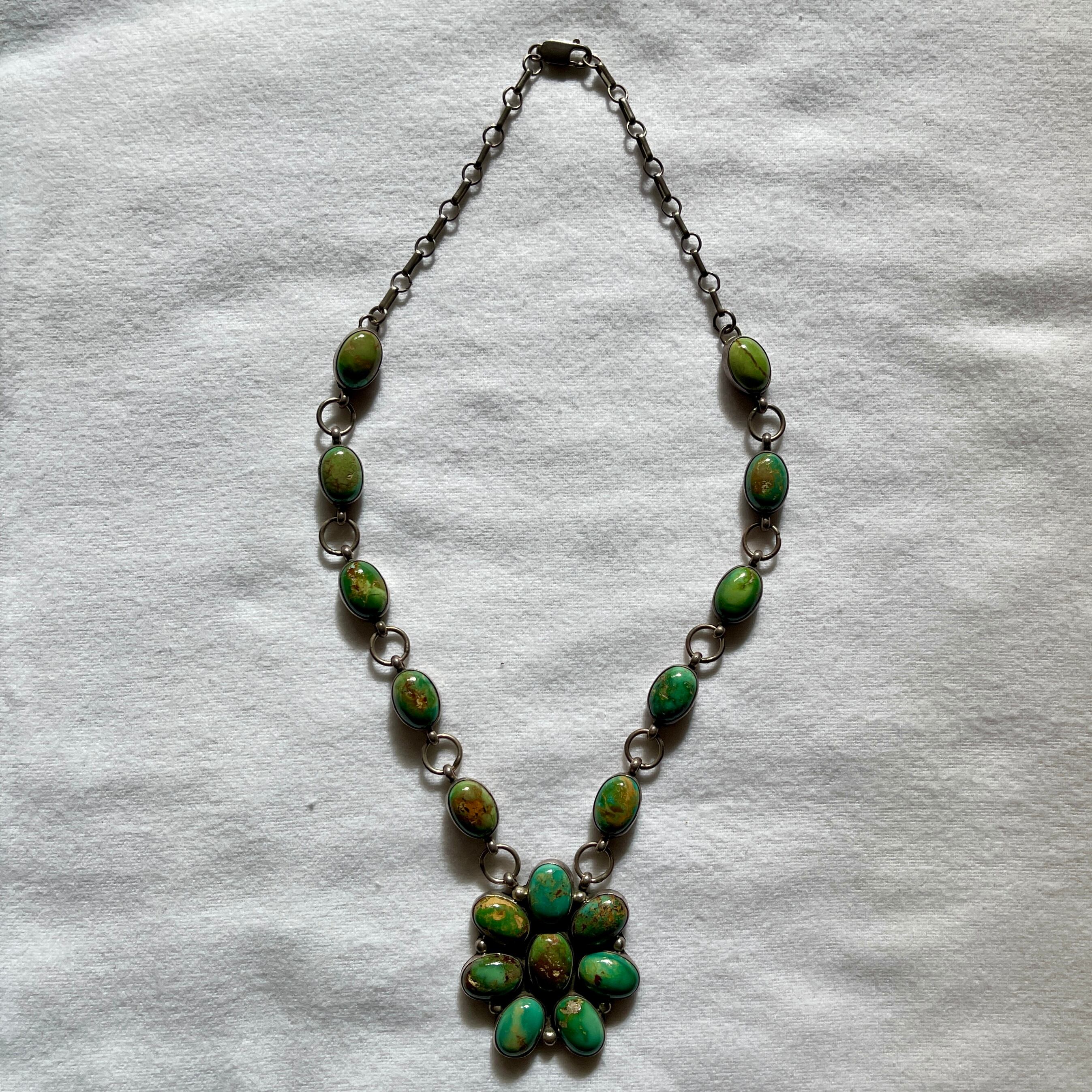 ロイストンターコイズとシルバーを組み合わせたハンドメイドのヴィンテージネックレス。